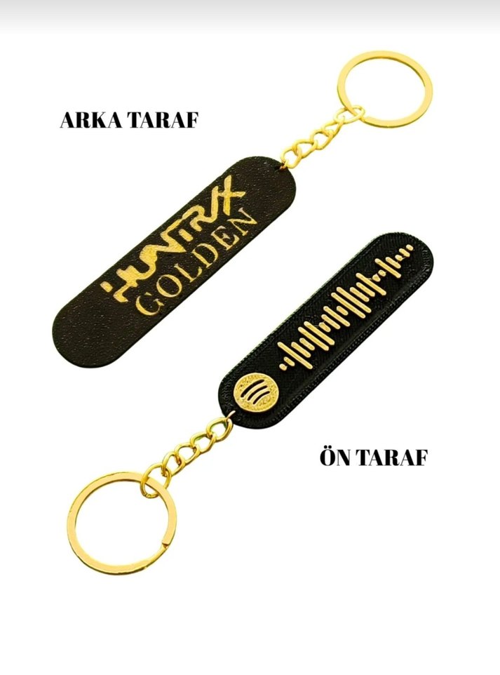 Altın renkli metal anahtarlık, sokak stili ve rock punk havası taşıyor. Her iki tarafında kazınmış yazı ve taranabilir kod bulunur.