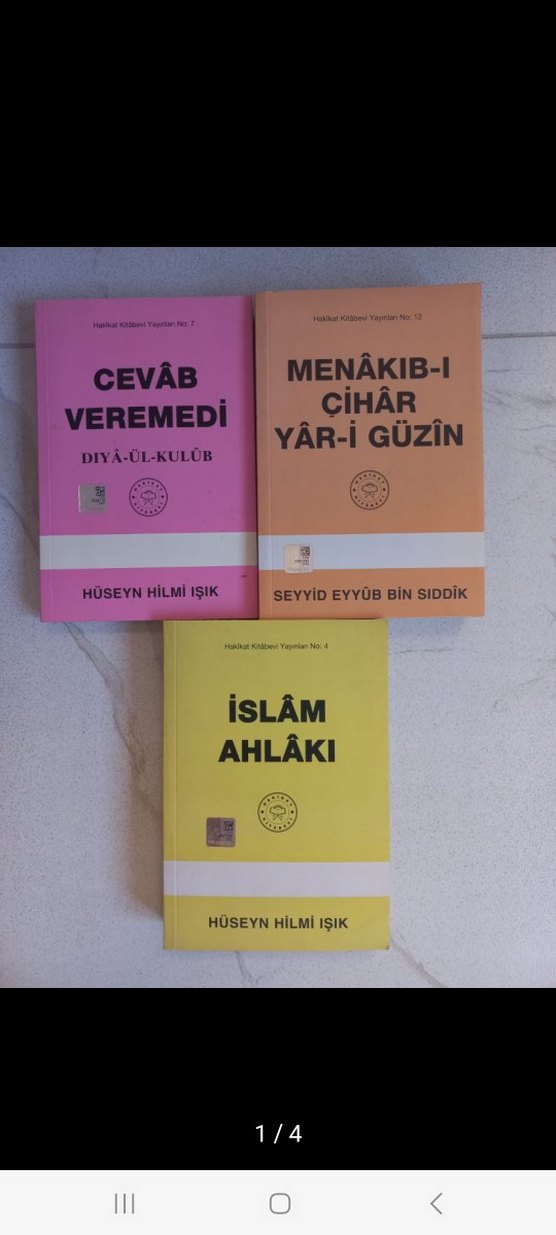 Hüseyin Hilmi Işık ve Seyyid Eyyüb Bin Siddik'in yazdığı üç kitap seti: "Cevâb Veremedi", "İslâm Ahlâkı" ve "Menâkıb-ı Cihâr Yâr-i Güzîn". kullanılmadılar #dinikitap #huseynhilmiışık #islamahlakı