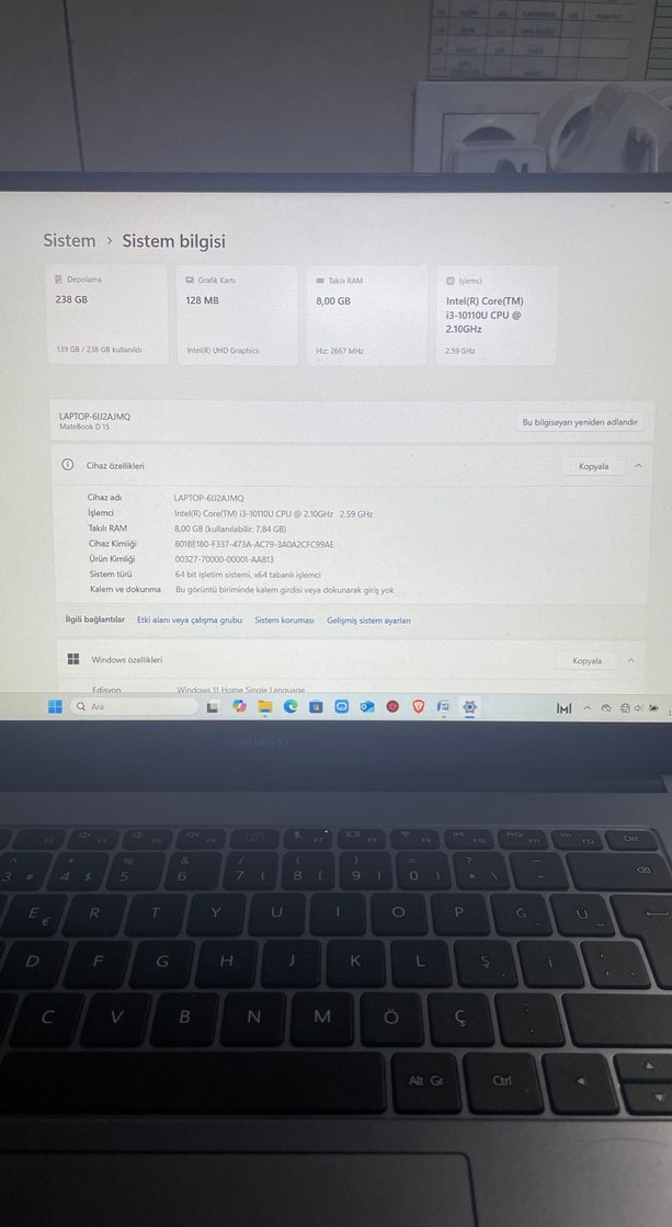 Intel Core i3 işlemcili, 8GB RAM ve 238GB SSD depolamalı gri laptop. Intel UHD Grafik kartı ve Windows 11 işletim sistemi bulunur. Cercevede kücük bir catlak vardır herhangi bi sorun teşkil etmez cihazda herhangi bi problem yoktur özelliklerini ekledim şarj aleti ile gönderim olucaktır kutusu faturası yoktur 2020 yılında alındı öğrenci olduğum icin ders icin kullandım