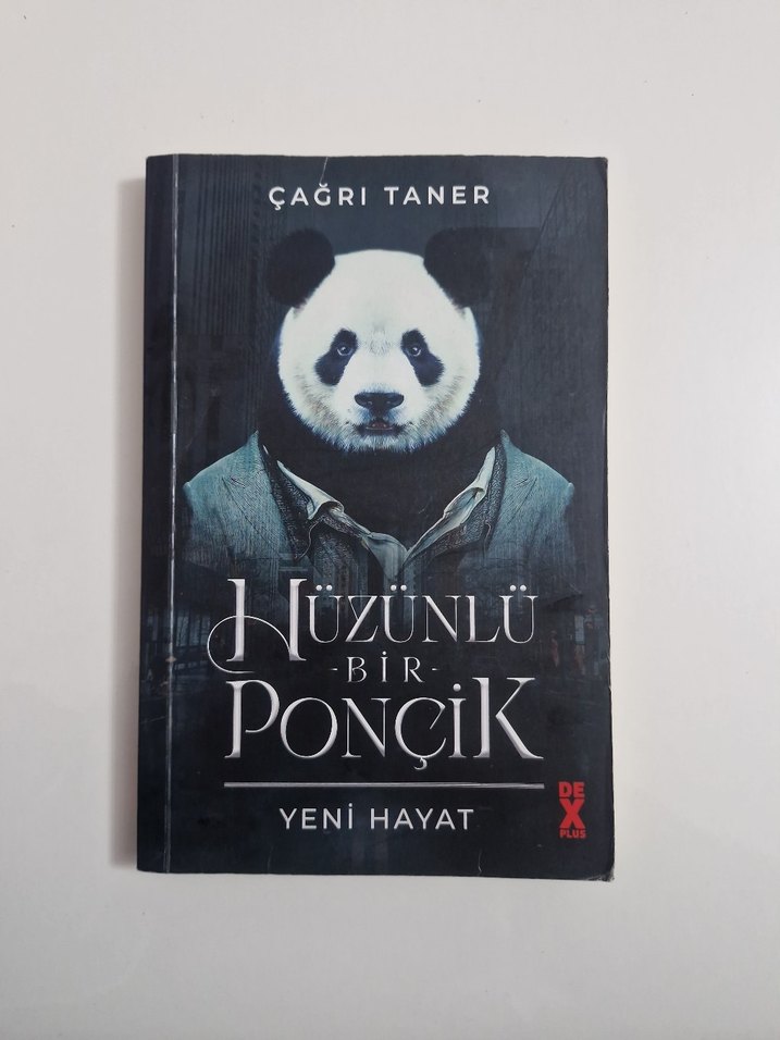 Çağrı Taner'in 'Hüzünlü Bir Ponçik: Yeni Hayat' adlı mizah kitabı, kapakta takım elbiseli bir panda görseliyle.
