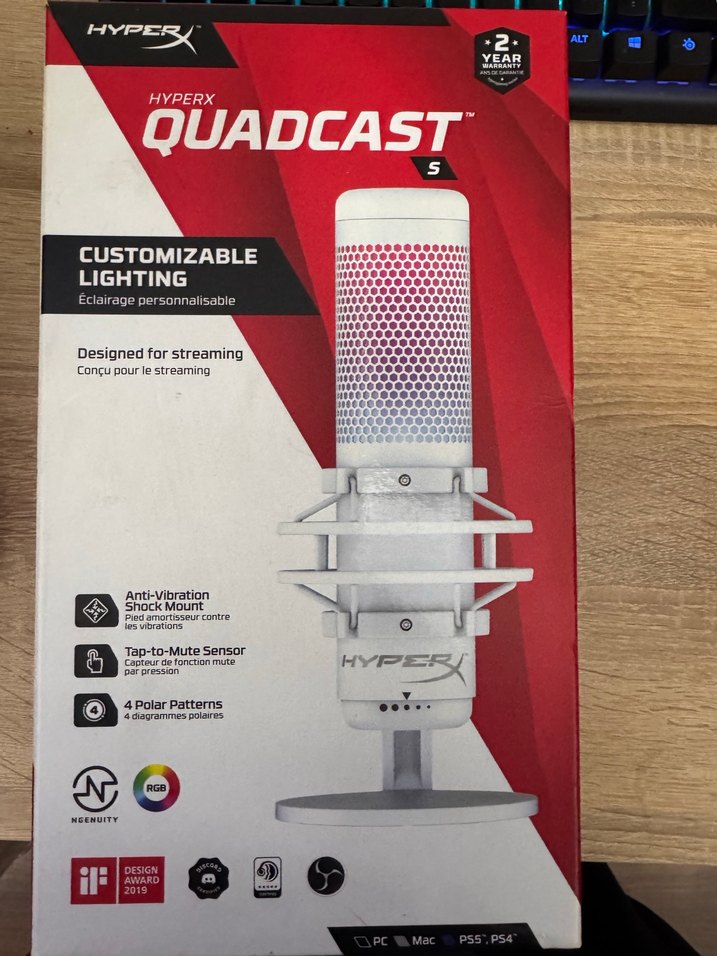 MediaMarkt Marktan alındı HyperX QuadCast S beyaz mikrofon, özelleştirilebilir aydınlatma, titreşim önleyici tutucu, dokunmatik sessize alma sensörü ve dört polar desen sunar. Yayınlar için tasarlanmıştır.