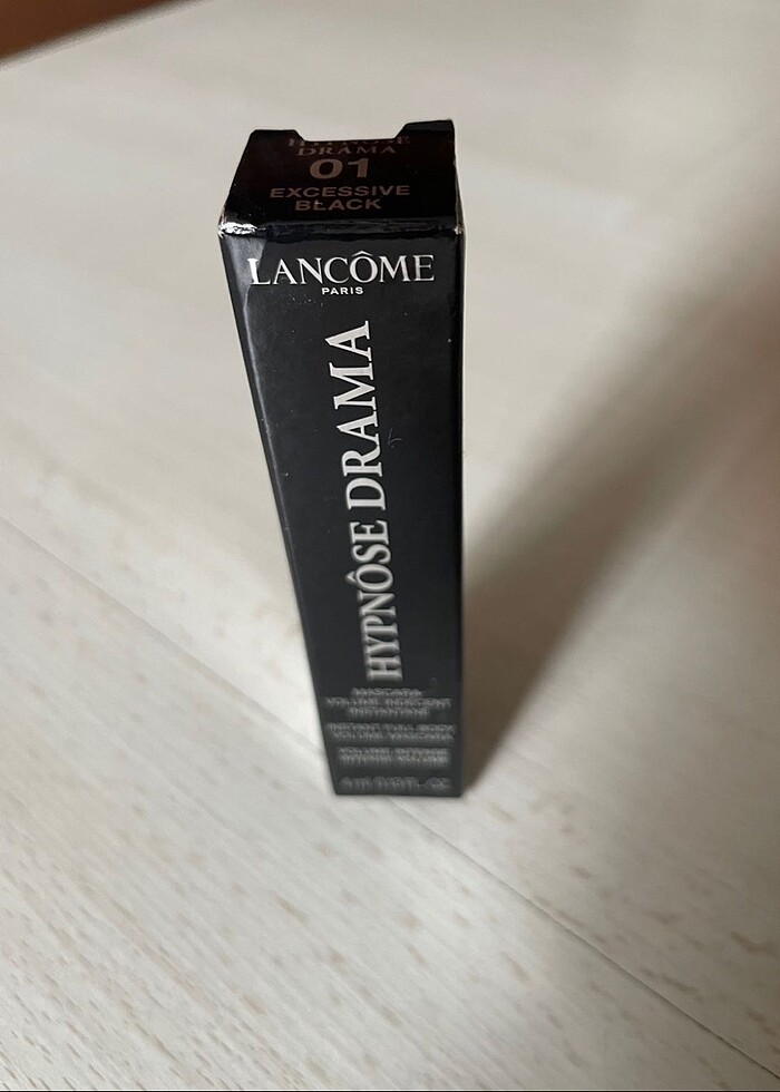 Lancome makyaj seti hediyesi sebebiyle satın aldim. 1 kere bile kullanılmadı, fotoğrafını cekmek icin ilk defa açtım. 4 ml dir. En kucuklerden degil, midi maskara. Online magaza faturasi da resimler arasinda var.