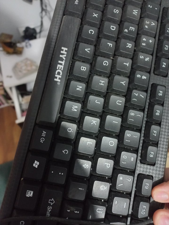 HYTECH marka siyah klavye, dayanıklı yapısı ve rahat yazım için iyi aralıklı tuşlara sahiptir. Koyu renkli ve standart düzenlidir. ⌨️