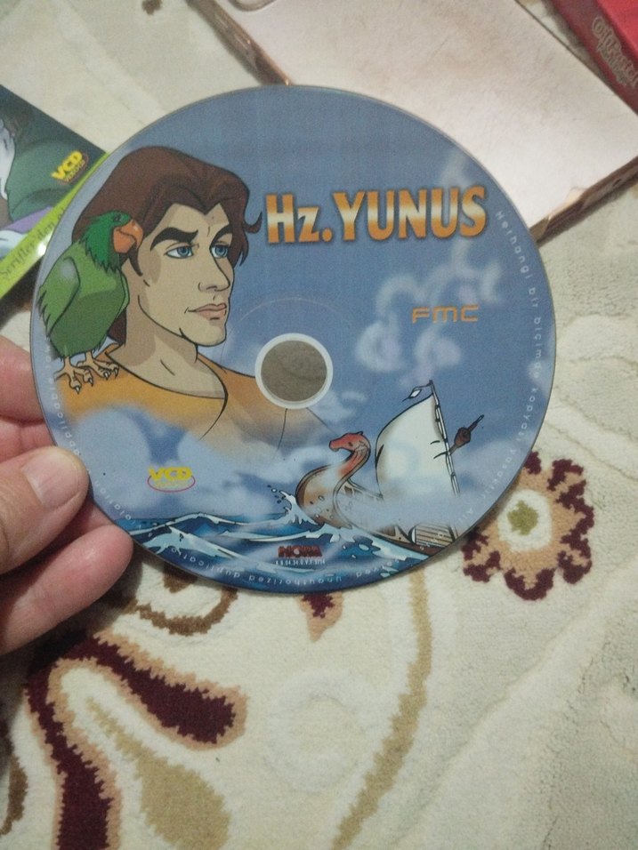 Hz. Yunus'un animasyonlu sesli kitabını içeren CD, denizde gemi ve papağan ile bir adamın görsellerini barındırır.