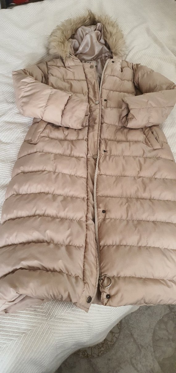 uzun bej renkli kadın kışlık mont deformasyon yoktur .giyim tarzimi değiştirdiğim.icin satiyorum sıcak tutuyor.