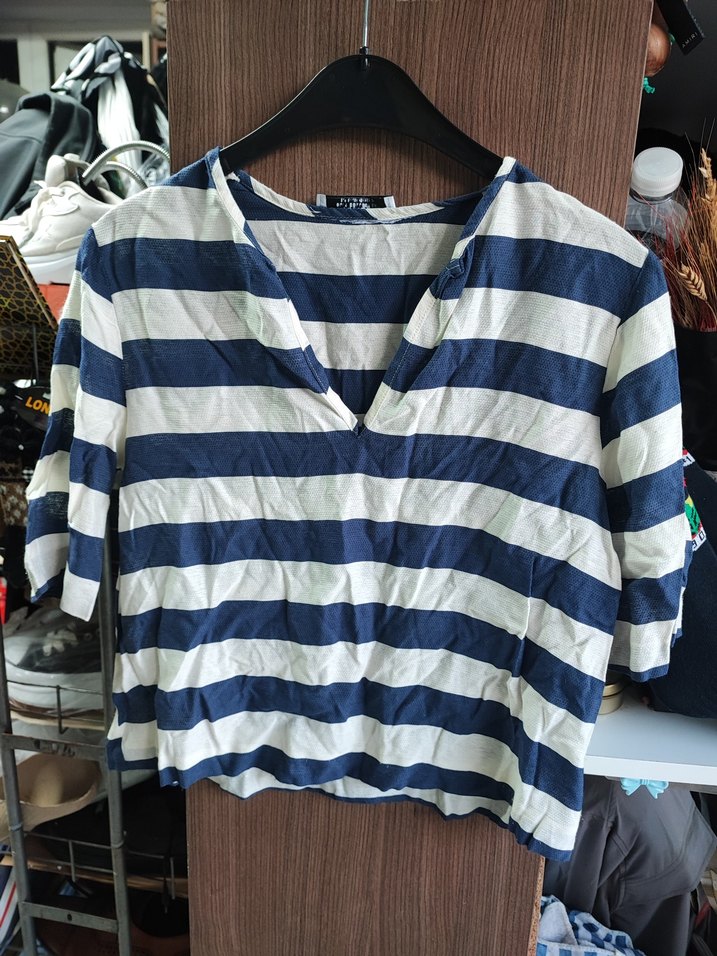 i Mavi Beyaz Çizgili Kadın Gömlek az giyilmis