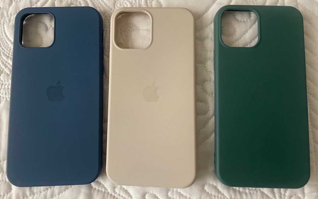 Bej yeşil mavi renkte, sade tasarımlı ve Apple logosu kabartmalı telefon kılıfı. 3 lü olarak satılmaktadır