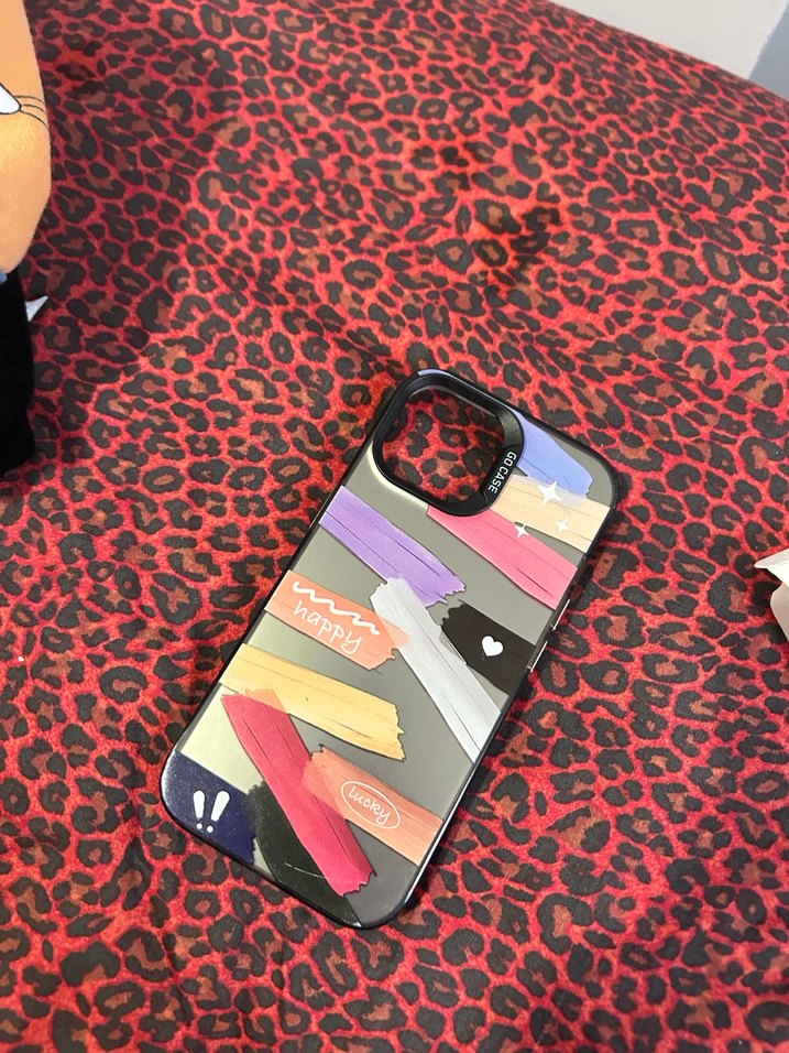 Parlak yüzeye sahip, çeşitli renklerde boyalı çizgiler ve eğlenceli yazılar içeren pop kültür temalı telefon kılıfı. Modern akıllı telefonlara uyumludur.
