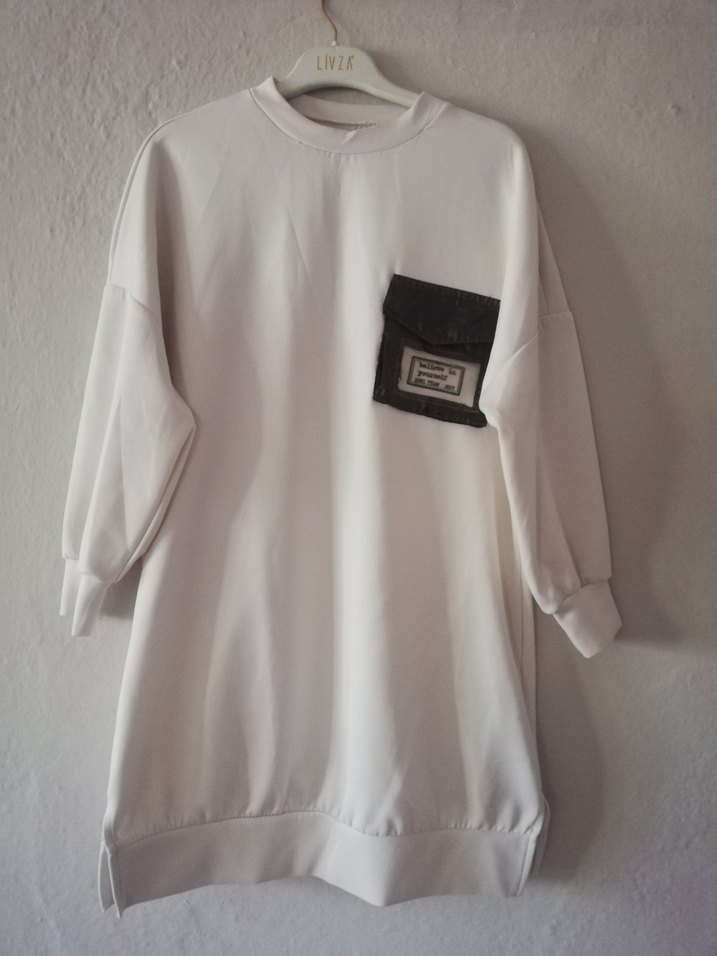 Uzun kollu, bisiklet yaka ve bol kesim kadın sweatshirtü, gr. Cep yerinde soyulma var bedeni kesık ml uygun