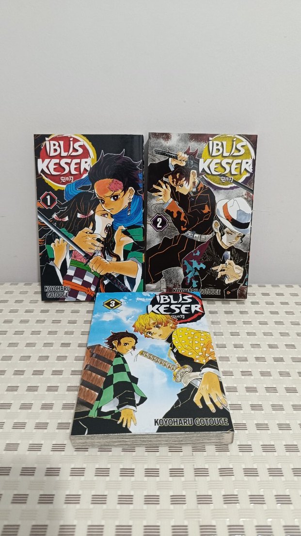 Koyoharu Gotouge'nin İblis Keser serisinin ilk üç cildi, hareketli karakterler ve aksiyon dolu sahneler içerir.