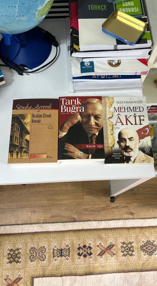 Sönika Ayverdi'nin "İbrahim Efendi Konağı", Tarık Buğra'nın "Küçük Ağa" ve Süleyman Nazif'in "Mehmed Akif" kitapları.