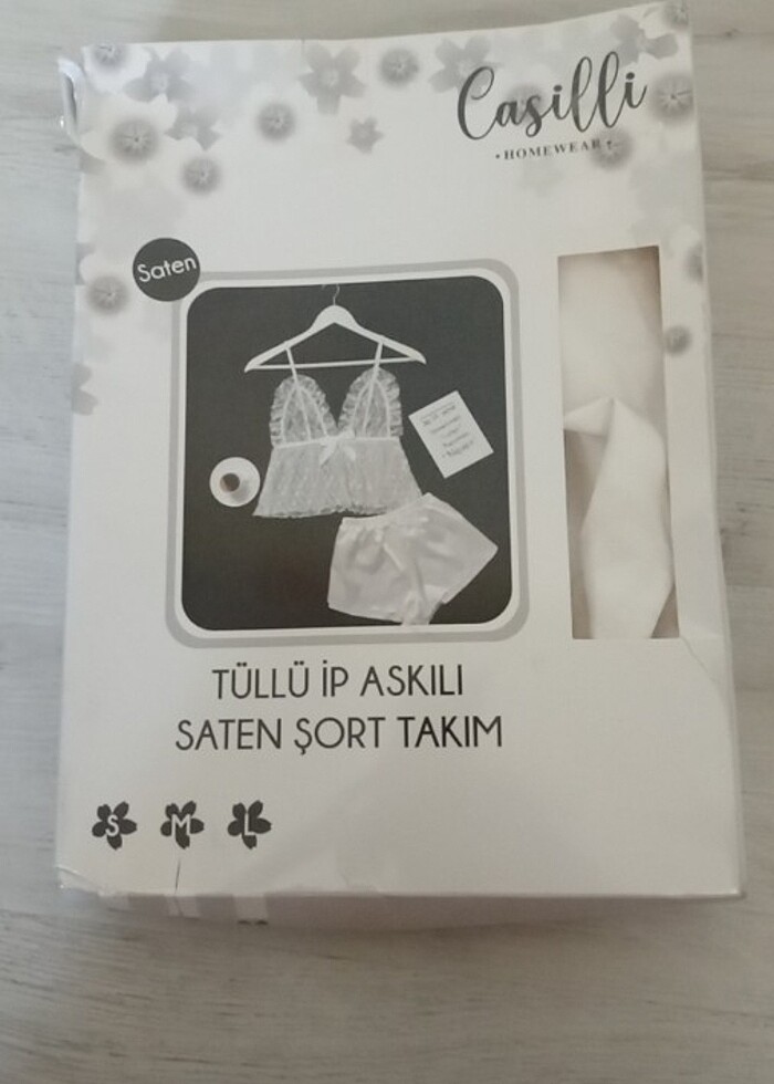 Tüllü ip askılı saten şort takımı