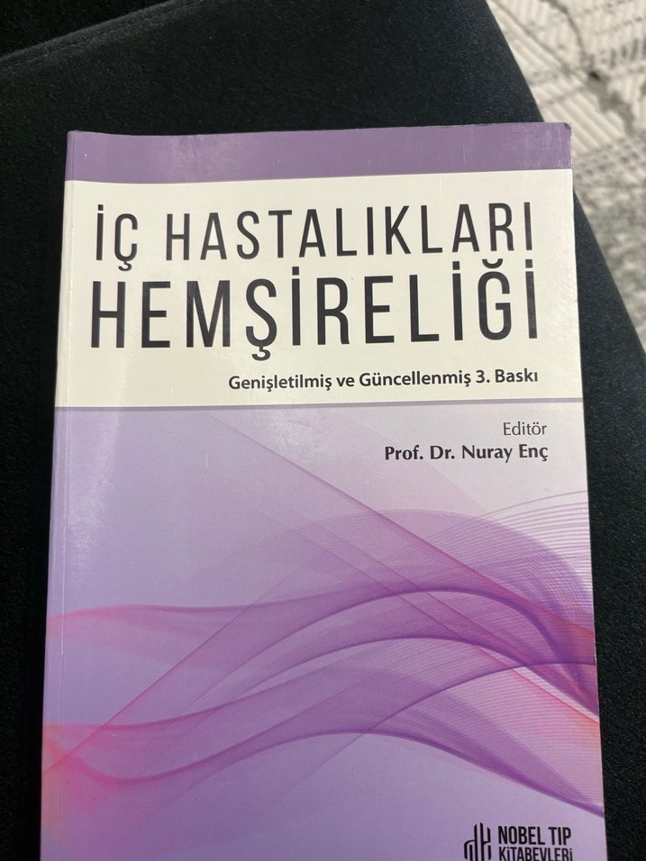 Prof. Dr. Nuray Enç'in editörlüğünde genişletilmiş ve güncellenmiş 3. baskı İç Hastalıkları Hemşireliği kitabı. Nobel Tıp yayınevi. Dahiliye hemşireliği kitap 30 40 sayfada altı çizilmiş yerler var onun dışında tertemiz