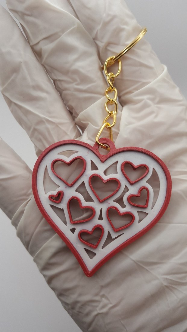 İç İçe Kalpli Sevgililer Günü Kırmızı Beyaz Şık Anahtarlık
