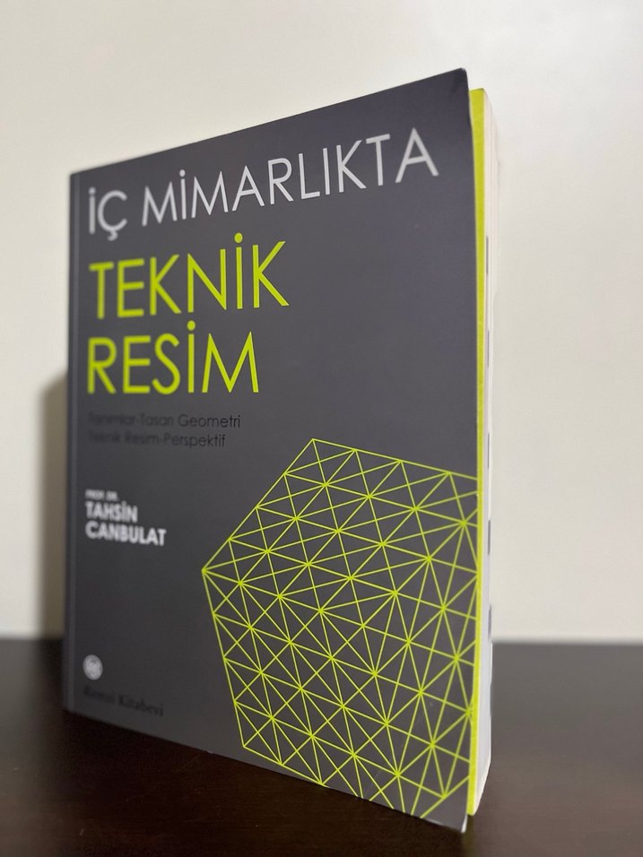 İç mimarlıkta teknik resim, geometri ve çizim perspektifi konularını ele alan Tahsin Canbulat’ın kitabı.