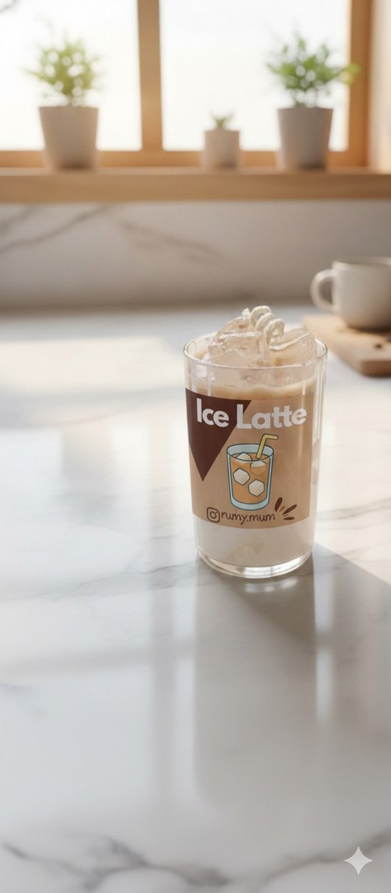 Bej pastel renkte, köpüklü Ice Latte tasarımlı mum. Sıcak bir atmosfer yaratmak için ideal. ☕