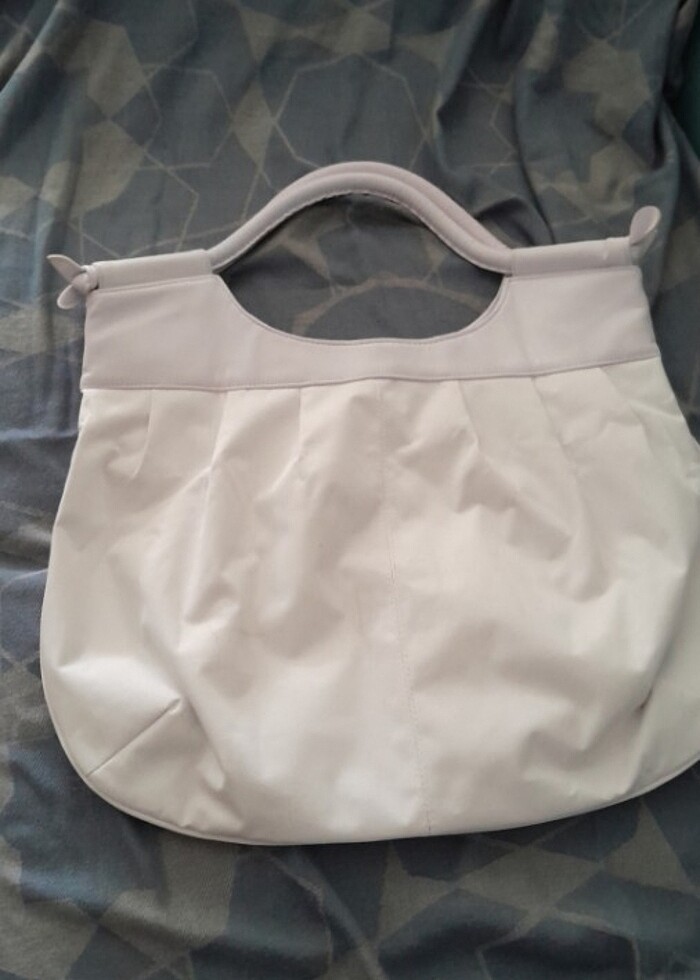Beyaz 2 astarlı bir fermuarlı gözü bir de küçük telefon gözü var az kullanıldı sağlam fermuarlı cantanın bir tarafının sapına yakın kısmında hafif mavilik var başka bir kusuru yok