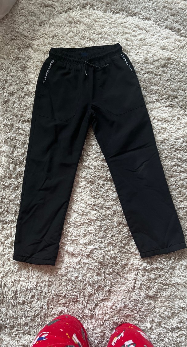 Siyah renkte, içi polarlı, bel bantlı ve bol kesim erkek çocuk pantolonu. Yumuşak sentetik kumaştan üretilmiş, desen içermeyen rahat bir tasarım.