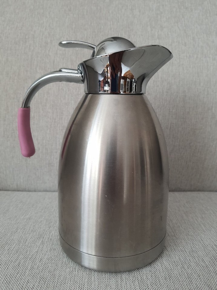 Gri çelik gövdeli, pembe kulplu ve parlak metal kapaklı çaydanlıktır. Kolay döküm saglar☕