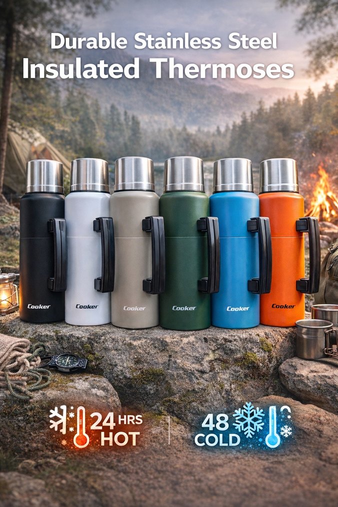İçi Dışı paslanmaz çelik kamp termosu 1.5lt oynar kulplu