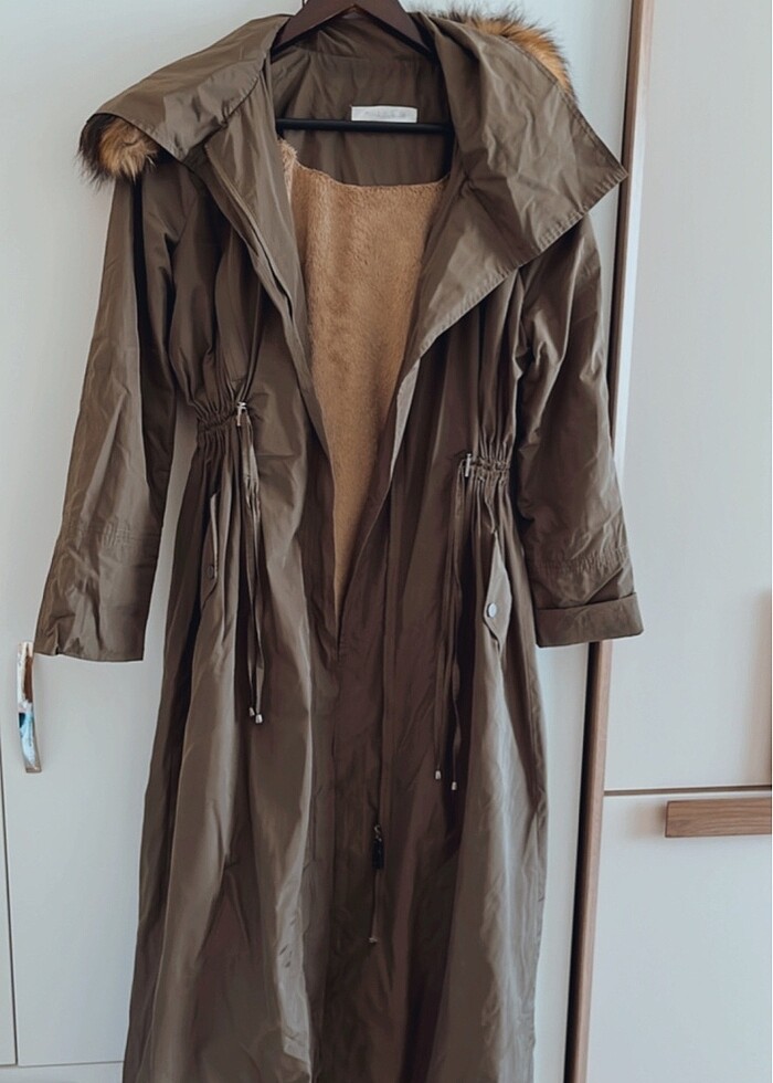 Tesettür içinde çok uygundur. Belden büzgülüdür. İçi kürklüdür sıcak tutuyor. Kapüşonu çıkarılabiliyor. Sayılı giyildi. Tertemiz defosu yok.