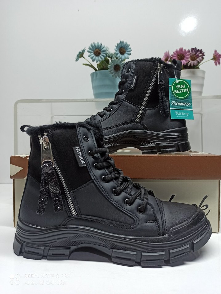 . *LÜTFEN ALMADAN ÖNCE NUMARA SORUN *Siyah Kadın Kauçuk Kaymaz Taban Soğuk ve Su Geçirmez Yandan Fermuarlı ve Bağcık İçi Kürklü * 36.37.38.39.40 Şekilde Numaralar Mevcut * Ürünlerimiz sıfır ambalajında kutulu barkotlu * Resim çekimler kendimize aittir gördüğünüz gibi gelecek * Ürünlerimizde değişim ve iade vardır * Aynı gün kargoya verilir Satın almadan önce lütfen numara ve beden sorun * Almadan önce lütfen ilan actrin.