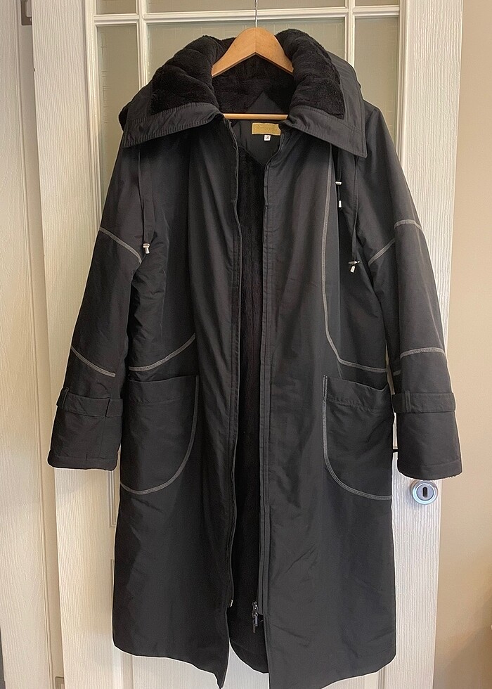 Amoretto marka Bilek boy komple içi ve kolları sıcak astarlı soğuk ve su geçirmez Kapişonlı ve yakalı boydan fermuarlı Kaban Siyah renkte 44 beden