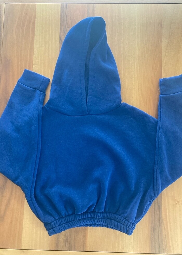 İçi polar kalın crop. Beden ve marka etiketi yok ama XS/S bedene olur. Rengi Saks mavi