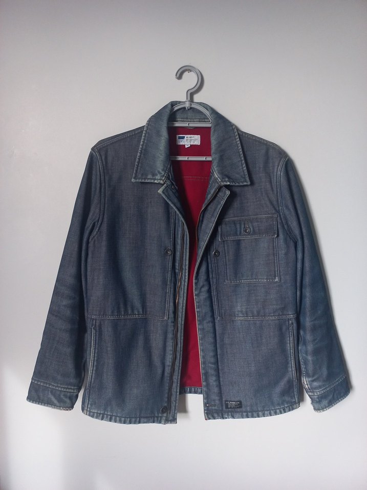 Vintage Orijinal Levi's kot mont. İçi polar. Notlu yaka ve rahat kesim ile günlük kullanıma uygun sokak stili.