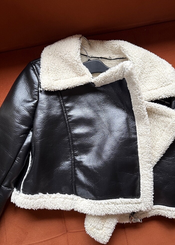 İçi suni kürk dışı parlak siyah suni deri. Kolları ayarlanabiliyor. 2 kez giydim kullanmadığım için satıyorum. Bir butikten almıştım markasını hatırlamıyorum. Güzel bir model ve sıcak tutuyor