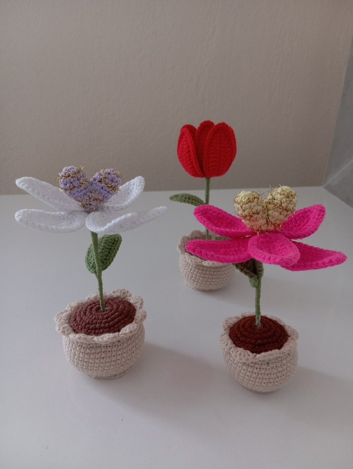 İçi Sürprizli Örgü Saksılı Lale