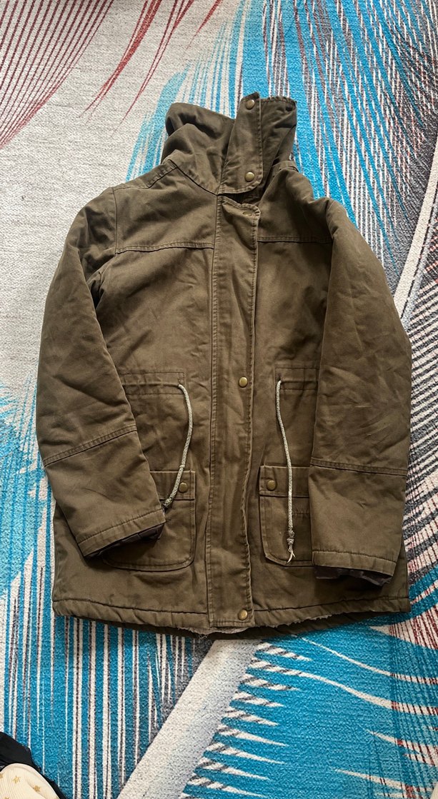 İçi Yünlü Haki Yeşil Bağlamalı Midi Boy Mont