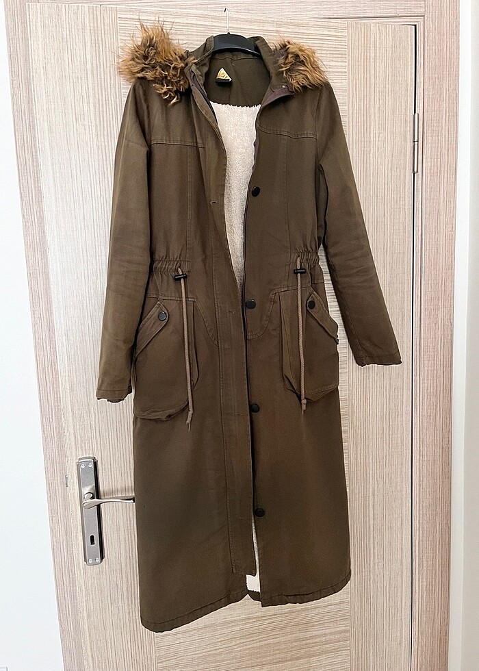 Bir deformesi yoktur. Ürün 1 sene kullanıldı kilo aldığım için. Hem fermuarlı hem de düğmelidir. Beli lastiklidir. Tertemiz sıcacık tutan bir kaban. Boy 117 göğüs 49 kol omuzdan itibaren 62.