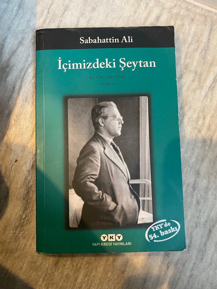 Sabahattin Ali'nin "İçimizdeki Şeytan" adlı romanının YKY 54. baskısı. Kitap kapağında yazarın siyah-beyaz fotoğrafı yer alıyor.
