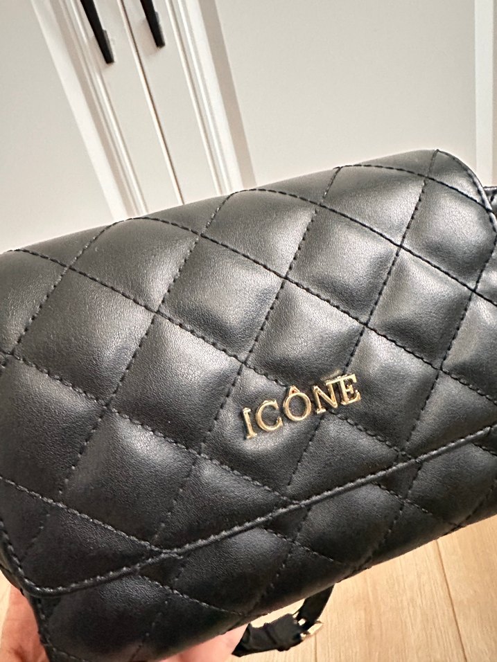 Parlak siyah deriden, kapitone nakış desenli kadın çanta. ICONE logosu ile modern klasik, Paris tarzı günlük kullanım için uygun. Hiç kullanılmadı sıfır ürün
