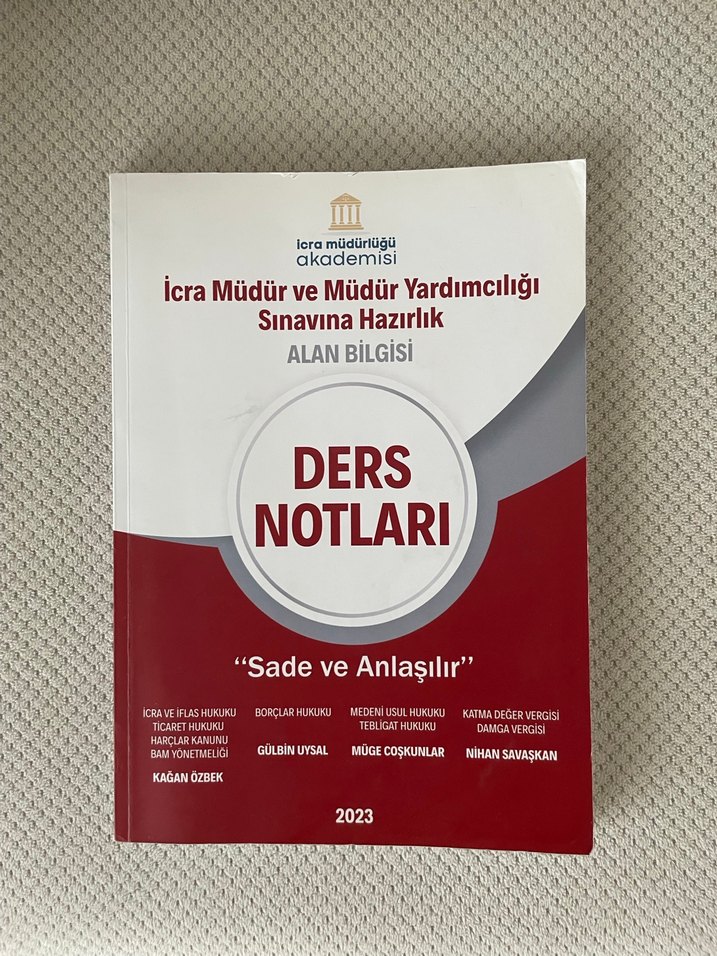 2023 yılına ait, icra müdür ve müdür yardımcılığı sınavına hazırlık için sade ve anlaşılır ders notları içeren kitap. kitabın %30u kurşun kalemle çizili ama temiz kullanıldı