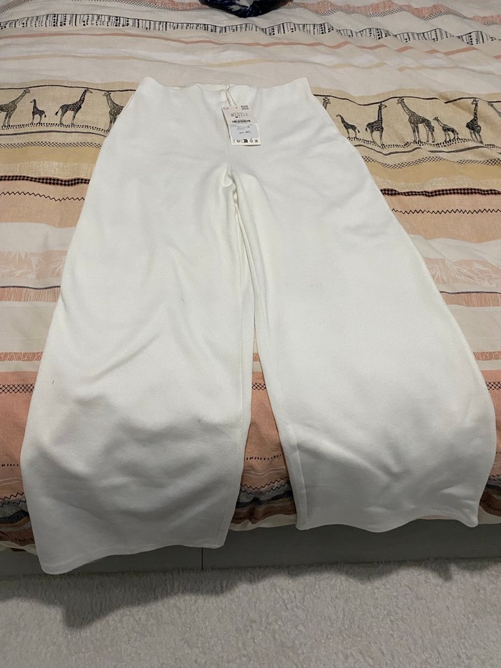 İçten lastikli orta bel pantolon zara kirli beyaz