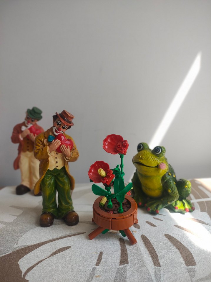 içten selamlayan kalp tutan palyaço ve sevimli kurbağası