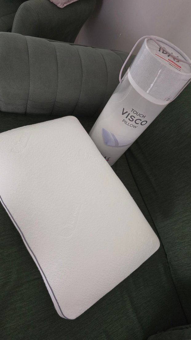 Baskılı detaylara sahip beyaz visco yastık, rahat destek sağlar. Koruyucu silindirik kutuda gelir.Hiç kullanılmamış