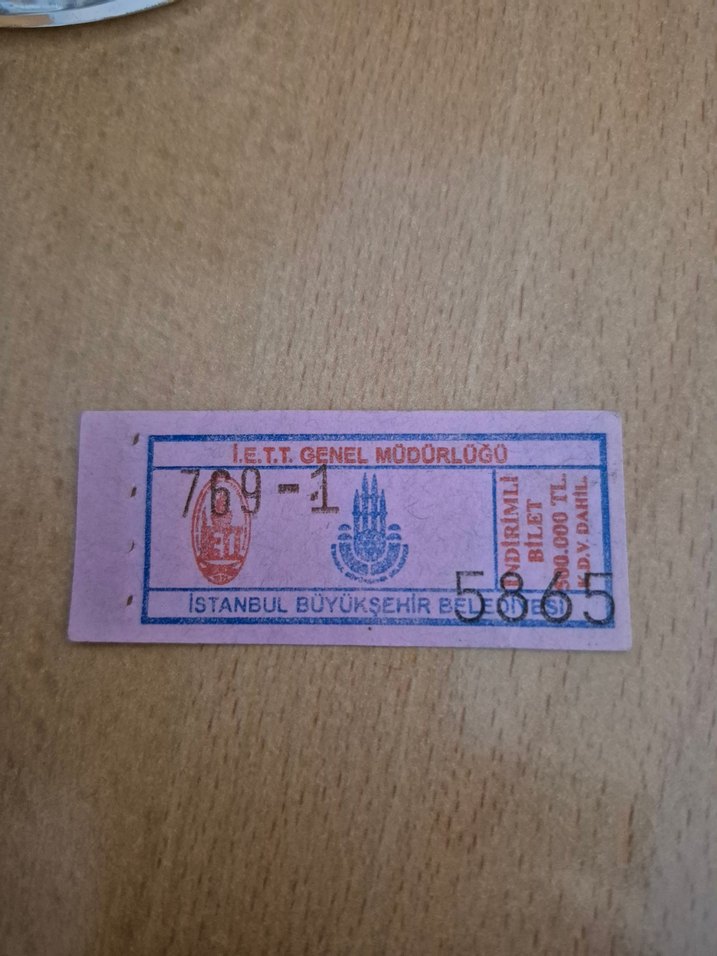 Koleksiyonerler için iett otobüs bileti kondisyonu çok iyidir. Resmi damgalar ve yazılar içeren pastel camel renginde nostaljik İstanbul toplu taşıma bileti, hatıra olarak kullanılabilir.