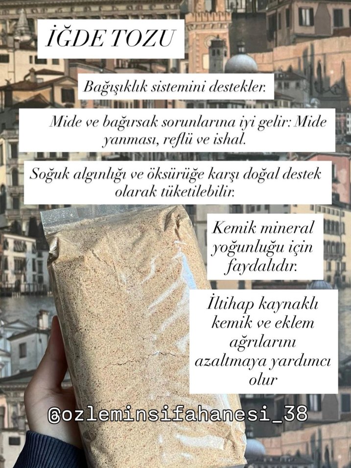 İğde tozu bağışıklık sistemini destekler, mide yanması, reflü ve ishal gibi sindirim sorunlarına iyi gelir. İltihap kaynaklı kemik ve eklem ağrılarını azaltmaya yardımcı olur, soğuk algınlığı ve öksürüğe karşı doğal destek sağlar.