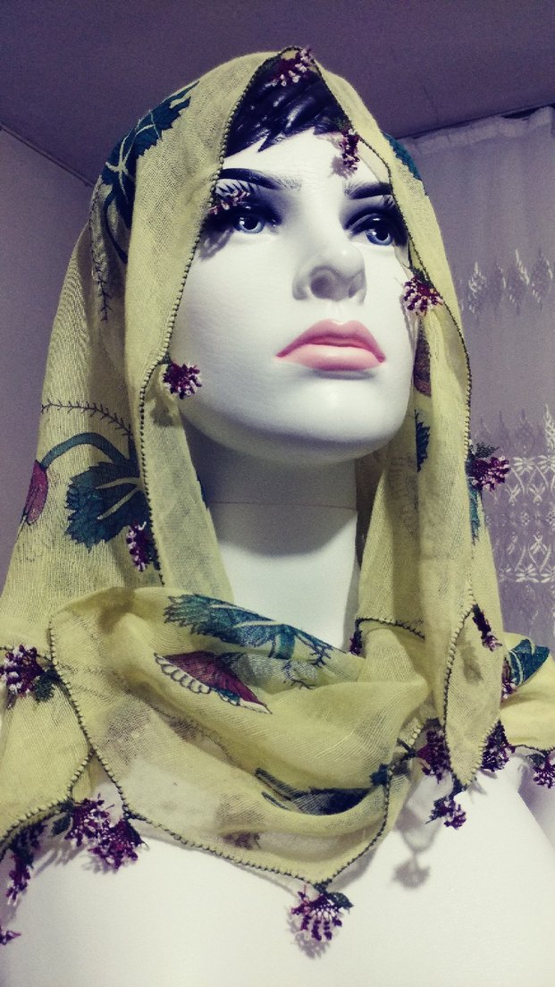 Sarı renk zemin üzerine yeşil ve bordo çiçekleriyle süslenmiş iğne oya işlemeli yazma Yazma fular olarakta kullanmaya uygundur. Yazmanın ölçüsü 72 cm ( Görsel ve ürün kendime aittir )