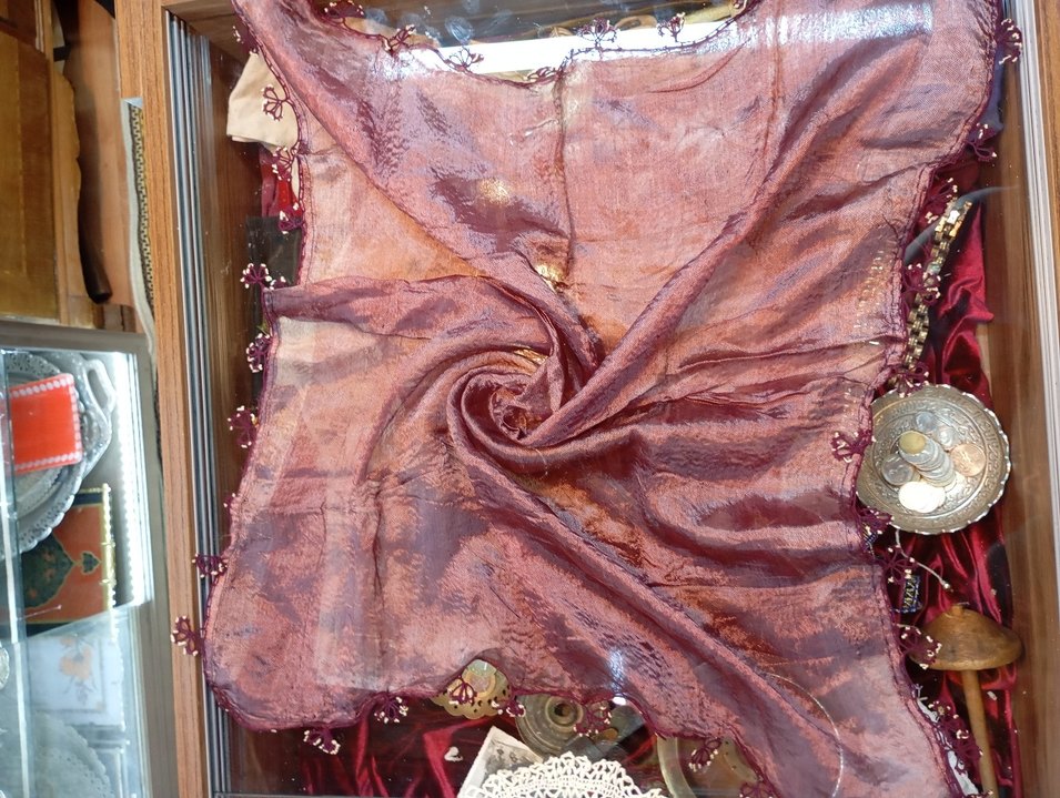İğne oyalı 1950lerden ipek Fular, 75x75, rengi yanar dönerli her fotoğrafta farklı çıkmış ama 3. fotoğraf en yakın olanı bordo rengi