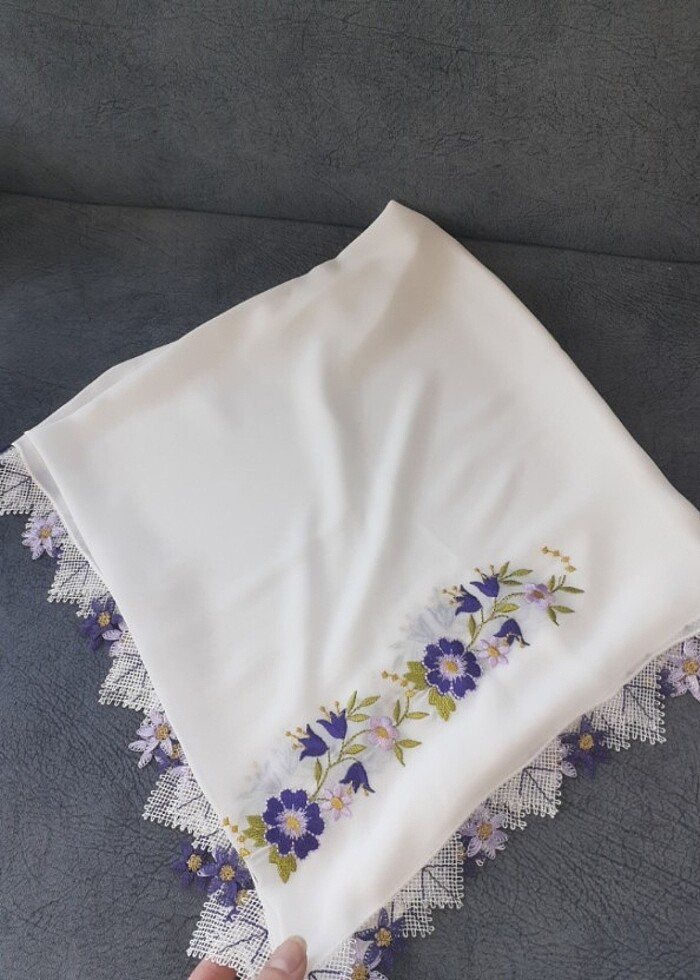 ÜÇ KENARI İĞNE OYALI BIR KENARI İŞLEMELİ MEVLUD ÖRTÜSÜ