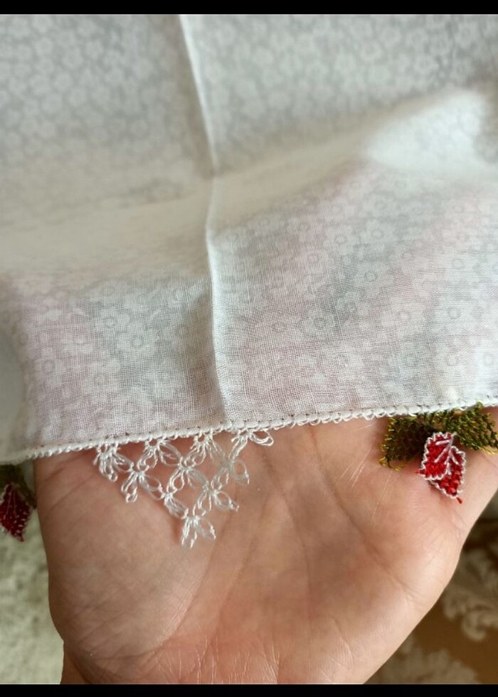 Çeyiz ürünleridir. Hiç kullanılmadı. Dikdörtgen şeklinde ve kendinden desenlidir. Ufak bir tarafında çift iplik olmuş fakat belli bile olmuyor.Ağır ve şık modeldir.