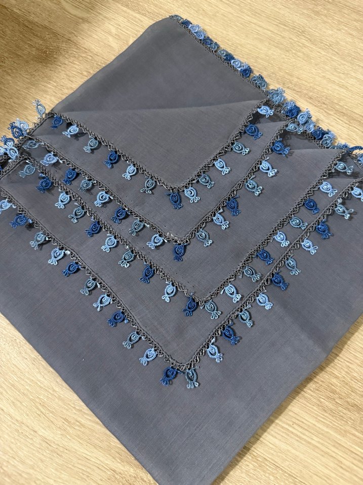 Yeni hiç kullanılmadı.Gri yazmayla mavi tonlarla oyası uyumludur.temiz işçilik.yazmanın markası Ören bayandır.