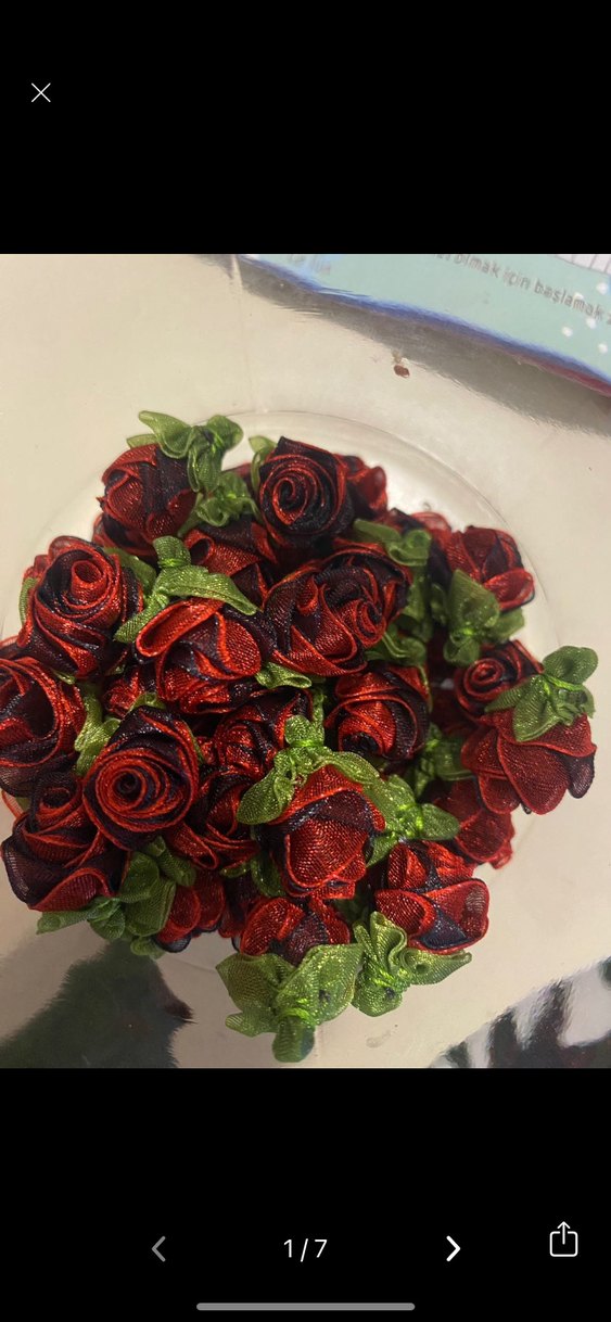 Organze şeritten gül oyası set ilanıdır örnek işlemeleriyle bordo olan 1 cmlik pembe işlemeler 6mmliktir son görseldeki sarı ve bordo arasındaki boy farkı mm farkını göstermektedir alıcısına istediği sayıya göre ilan açılır Tane fiyatı 7-8 tlye denktir 400 tl 45 gül