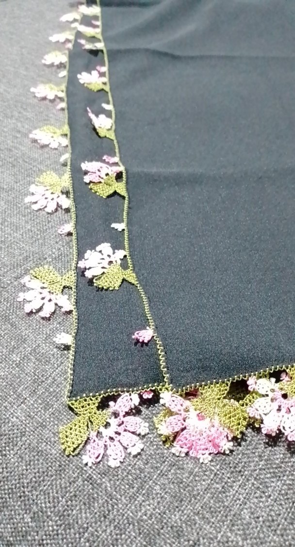 iğne oyası üç tarafı motifi siyah başörtüsü