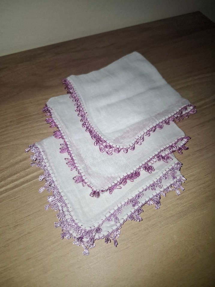 Yeni yapıldı. El yapımı. İğne oyası bebek mendili. 3 adet.