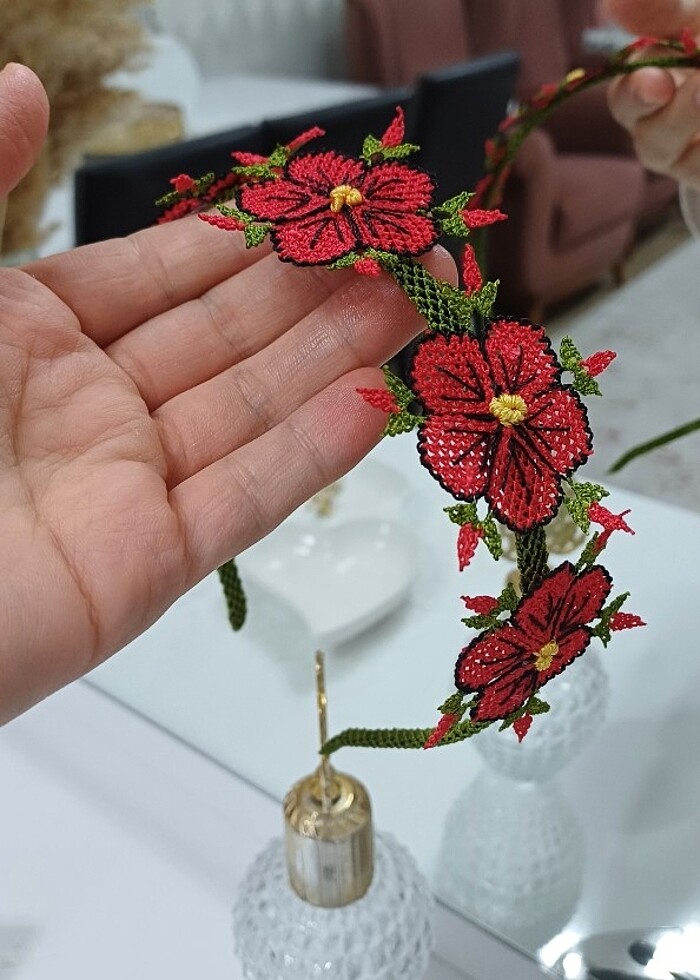 İğne oyası çiçekli saç tokası-taç yeni yapılmıştır. Özel günlerinizi renklendirecek sac aksesuarı